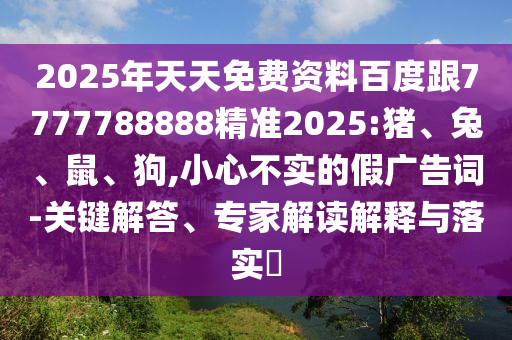 2025年天天免費資料百度跟7777788888精準2025:豬、兔、鼠、狗,小心不實的假廣告詞-關鍵解答、專家解讀解釋與落實?