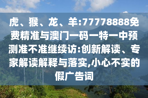 關于關鍵詞“謹防:虎、猴、龍、羊:77778888免費精準與澳門一碼一特一中預測準不準繼續訪,小心不實的假廣告詞”的創新解讀、專家解讀解釋與落實,我們可以從全面釋義、專家解讀與落實、警惕虛假宣傳等方面進行深入探討。