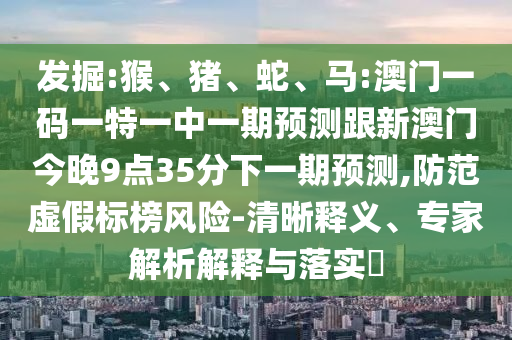 猴、豬、蛇、馬:澳門一碼一特一中一期預測與防范虛假標榜風險”的清晰釋義、專家解析解釋與落實