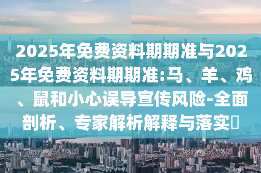 摘要:本文介紹了關(guān)于2025年免費(fèi)資料期期準(zhǔn)的內(nèi)容,涉及馬、羊、雞、鼠等生肖的預(yù)測(cè)解析,并提醒讀者注意避免誤導(dǎo)宣傳的風(fēng)險(xiǎn)。文章由專家進(jìn)行全面剖析和解析解釋,旨在為讀者提供準(zhǔn)確、可靠的信息,同時(shí)強(qiáng)調(diào)落實(shí)預(yù)測(cè)結(jié)果的重要性。