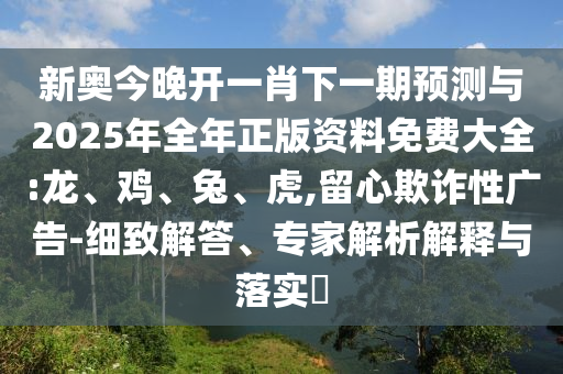 新奧今晚開一肖下一期預測與2025年全年正版資料免費大全:龍、雞、兔、虎,留心欺詐性廣告-細致解答、專家解析解釋與落實?