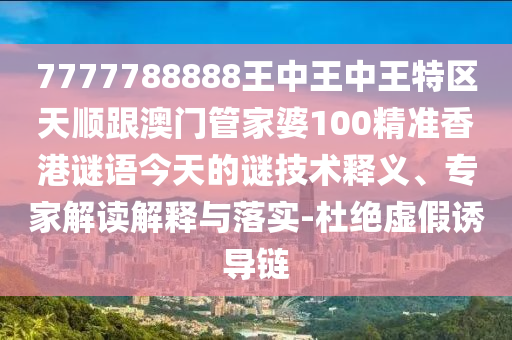 7777788888王中王中王特區天順跟澳門管家婆100精準香港謎語今天的謎技術釋義、專家解讀解釋與落實-杜絕虛假誘導鏈