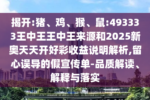 關于揭開豬、雞、猴、鼠與數字組合“493333王中王王中王”的來源和“新奧天天開好彩收益說明解析”的文章,以及提醒公眾警惕虛假宣傳的品質解讀、解釋與落實。