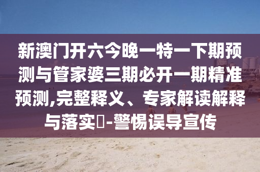 新澳門開六今晚一特一下期預測”與“管家婆三期必開一期精準預測”的完整釋義、專家解讀解釋與落實,以及警惕誤導宣傳的重要性