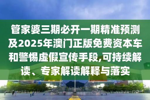 管家婆三期必開(kāi)一期精準(zhǔn)預(yù)測(cè)及2025年澳門(mén)正版免費(fèi)資本車(chē)”的解讀與警惕虛假宣傳手段