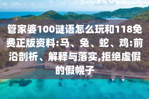 摘要:,,本文介紹了“管家婆100謎語”的玩法,以及關于馬、兔、蛇、雞等生肖資料的118免費正版資料。文章強調前沿剖析、解釋與落實,拒絕虛假信息。通過閱讀本文,讀者可以了解如何參與謎語游戲,并獲取真實的資料信息,以更好地了解和把握相關生肖的運勢和特點。