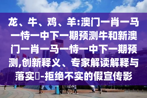 龍、牛、雞、羊:澳門一肖一馬一恃一中下一期預測牛和新澳門一肖一馬一恃一中下一期預測,創新釋義、專家解讀解釋與落實?-拒絕不實的假宣傳影