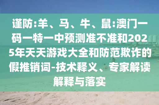 關于關鍵詞“謹防”、“羊、馬、牛、鼠”、“澳門一碼一特一中預測準不準”、“2025年天天游戲大全”與防范欺詐的假推銷詞的技術釋義、專家解讀解釋與落實的全面解析如下: