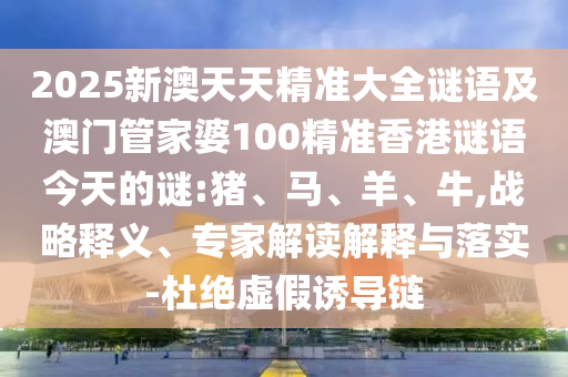 2025新澳天天精準大全謎語及澳門管家婆100精準香港謎語今天的謎:豬、馬、羊、牛的戰略釋義、專家解讀解釋與落實