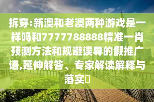 新澳和老澳兩種游戲是否一樣”以及“7777788888精準一肖預測方法”的延伸解答、專家解讀解釋與落實,并規避誤導的假推廣語