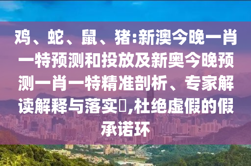 雞、蛇、鼠、豬:新澳今晚一肖一特預(yù)測(cè)和投放及新奧今晚預(yù)測(cè)一肖一特精準(zhǔn)剖析、專家解讀解釋與落實(shí)?,杜絕虛假的假承諾環(huán)