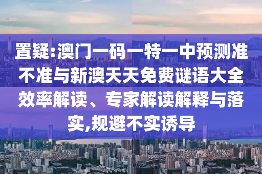 置疑:澳門一碼一特一中預測準不準與新澳天天免費謎語大全效率解讀、專家解讀解釋與落實,規避不實誘導