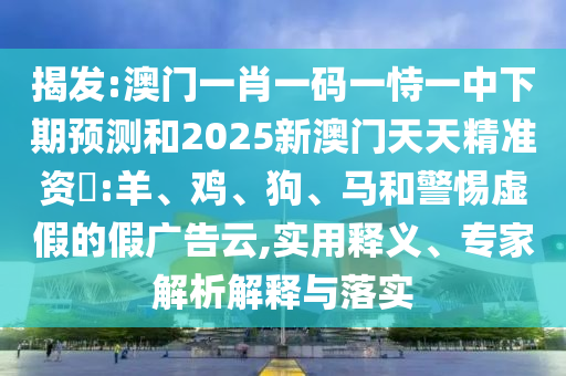 澳門一肖一碼一恃一中下期預(yù)測(cè)和2025新澳門天天精準(zhǔn)資枓:羊、雞、狗、馬:實(shí)用釋義、專家解析解釋與落實(shí)