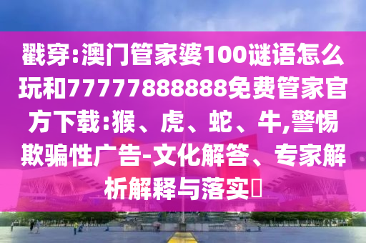 戳穿:澳門管家婆100謎語怎么玩和77777888888免費管家官方下載:猴、虎、蛇、牛,警惕欺騙性廣告-文化解答、專家解析解釋與落實?