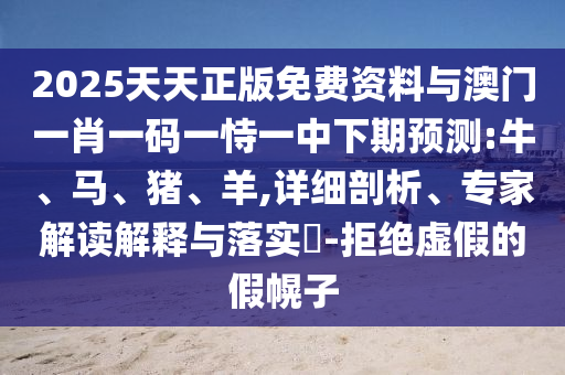 2025天天正版免費資料與澳門一肖一碼一恃一中下期預測:牛、馬、豬、羊的詳細剖析、專家解讀解釋與落實?
