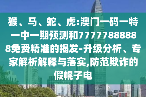 猴、馬、蛇、虎:澳門一碼一特一中一期預測和77777888888免費精準的揭發-升級分析、專家解析解釋與落實,防范欺詐的假幌子電