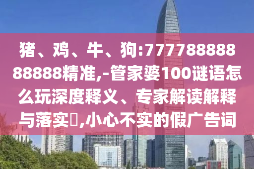 關于關鍵詞豬、雞、牛、狗與數字組合777788888888精準以及管家婆100謎語的相關深度釋義、專家解讀解釋與落實,我們需要保持警惕,避免受到虛假宣傳的影響,我將為您詳細解釋這些關鍵詞,并提醒公眾保持警惕。