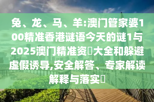 兔、龍、馬、羊:澳門管家婆100精準香港謎語今天的謎1與2025澳門精準資枓大全:安全解答、專家解讀解釋與落實?