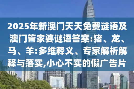 摘要:本文提供了關(guān)于澳門謎語和管家婆謎語答案的內(nèi)容,涉及豬、龍、馬、羊等生肖的多維釋義和專家解析解釋。提醒讀者要小心不實(shí)的假廣告片,避免被誤導(dǎo)。文章旨在為讀者提供真實(shí)可靠的信息,幫助大家更好地理解和解讀澳門謎語。