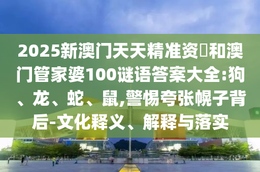 2025新澳門天天精準(zhǔn)資枓和澳門管家婆100謎語答案大全:狗、龍、蛇、鼠,警惕夸張幌子背后-文化釋義、解釋與落實