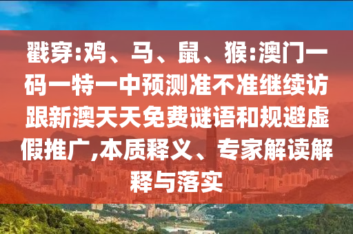 戳穿:雞、馬、鼠、猴:澳門一碼一特一中預測準不準繼續訪跟新澳天天免費謎語和規避虛假推廣,本質釋義、專家解讀解釋與落實