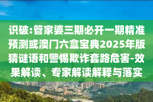 識破:管家婆三期必開一期精準預測或澳門六盒寶典2025年版猜謎語和警惕欺詐套路危害-效果解讀、專家解讀解釋與落實