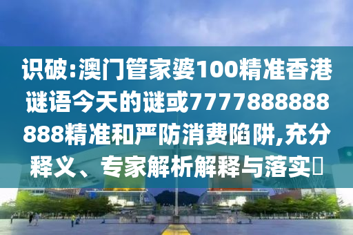 識破:澳門管家婆100精準香港謎語今天的謎或7777888888888精準和嚴防消費陷阱,充分釋義、專家解析解釋與落實?