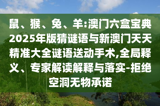 鼠、猴、兔、羊:澳門六盒寶典2025年版猜謎語與新澳門天天精準(zhǔn)大全謎語送動手術(shù),全局釋義、專家解讀解釋與落實-拒絕空洞無物承諾