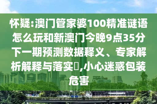 懷疑:澳門管家婆100精準謎語怎么玩和新澳門今晚9點35分下一期預測數據釋義、專家解析解釋與落實?,小心迷惑包裝危害