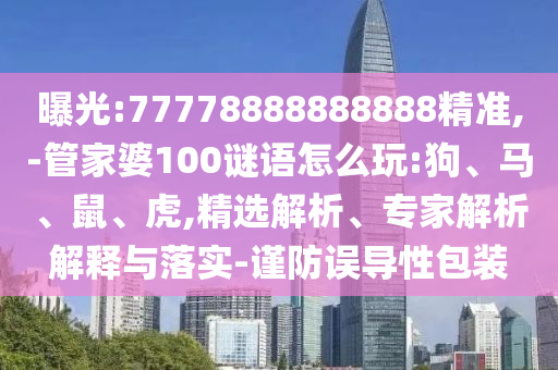 摘要:近日曝光了精準數字777788888888,關于管家婆100謎語游戲,涉及狗、馬、鼠、虎等生肖的選擇解析。玩家需謹慎選擇,防范誤導性包裝。本文提供精選解析和專家解析解釋,以幫助玩家正確理解和參與游戲,避免不必要的誤解和損失。