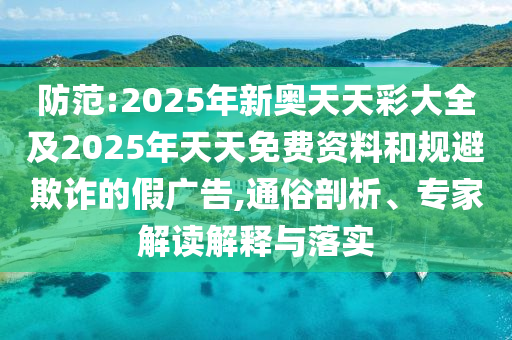 關于防范“2025年新奧天天彩大全”及天天免費資料的虛假宣傳與規避欺詐假廣告的通俗剖析、專家解讀解釋與落實