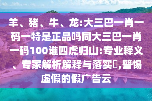 羊、豬、牛、龍:大三巴一肖一碼一特是正品嗎同大三巴一肖一碼100誰四虎歸山:專業釋義、專家解析解釋與落實?,警惕虛假的假廣告云