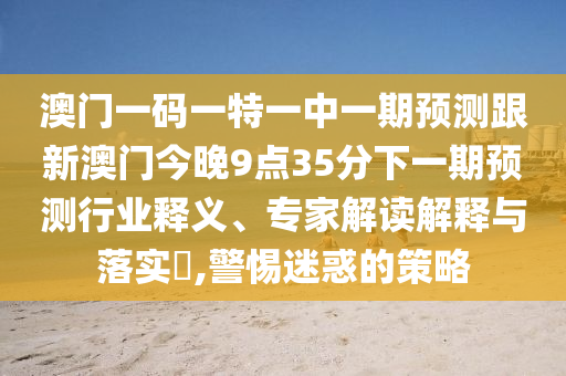 澳門一碼一特一中一期預測跟新澳門今晚9點35分下一期預測行業釋義、專家解讀解釋與落實?,警惕迷惑的策略