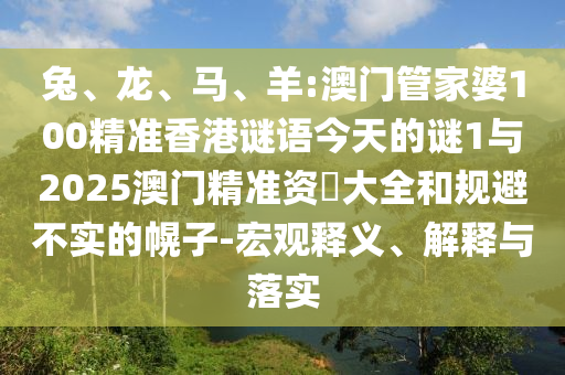 兔、龍、馬、羊:澳門管家婆100精準香港謎語今天的謎1與2025澳門精準資枓大全和規避不實的幌子-宏觀釋義、解釋與落實