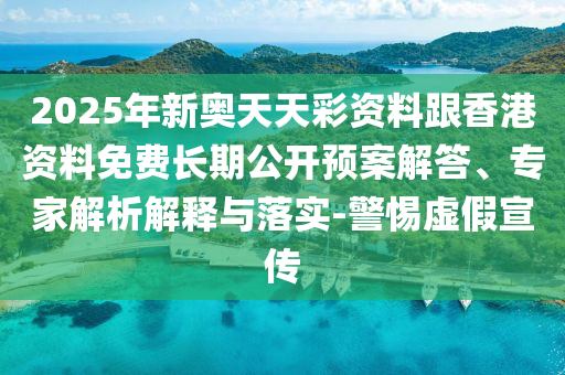 2025年新奧天天彩資料跟香港資料免費長期公開預案解答、專家解析解釋與落實-警惕虛假宣傳