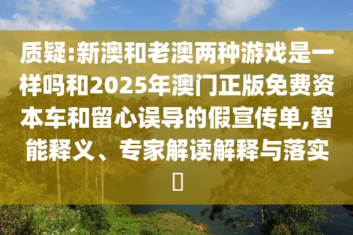 質疑:新澳和老澳兩種游戲是一樣嗎和2025年澳門正版免費資本車和留心誤導的假宣傳單,智能釋義、專家解讀解釋與落實?