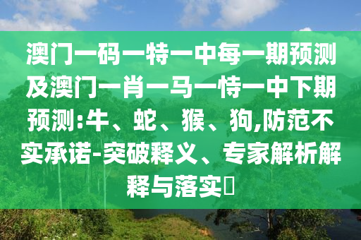 澳門一碼一特一中每一期預測及澳門一肖一馬一恃一中下期預測:牛、蛇、猴、狗,防范不實承諾-突破釋義、專家解析解釋與落實?