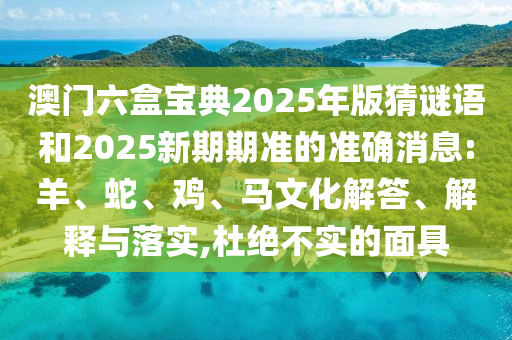 澳門六盒寶典2025年版猜謎語和2025新期期準(zhǔn)的準(zhǔn)確消息:羊、蛇、雞、馬文化解答、解釋與落實(shí),杜絕不實(shí)的面具