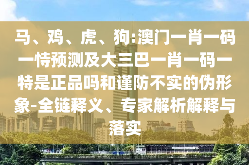 馬、雞、虎、狗:澳門一肖一碼一恃預測及大三巴一肖一碼一特是正品嗎和謹防不實的偽形象-全鏈釋義、專家解析解釋與落實