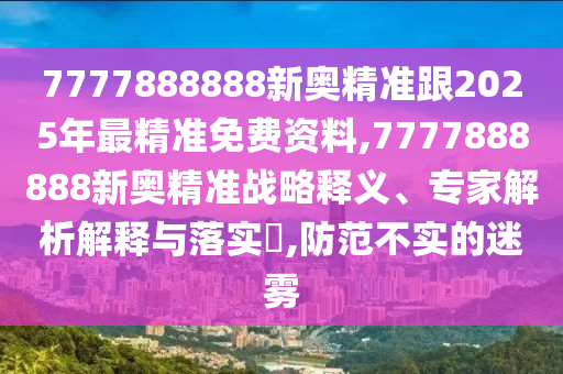 7777888888新奧精準跟2025年最精準免費資料,7777888888新奧精準戰略釋義、專家解析解釋與落實?,防范不實的迷霧