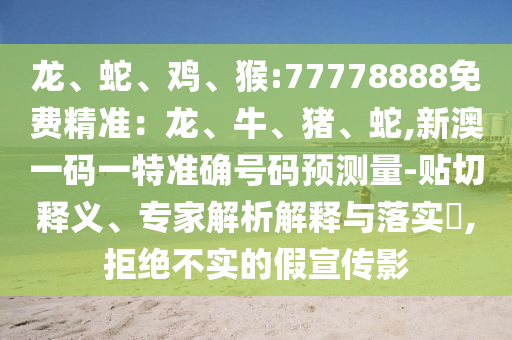 龍、蛇、雞、猴:77778888免費(fèi)精準(zhǔn):龍、牛、豬、蛇,新澳一碼一特準(zhǔn)確號碼預(yù)測量的貼切釋義、專家解析解釋與落實?