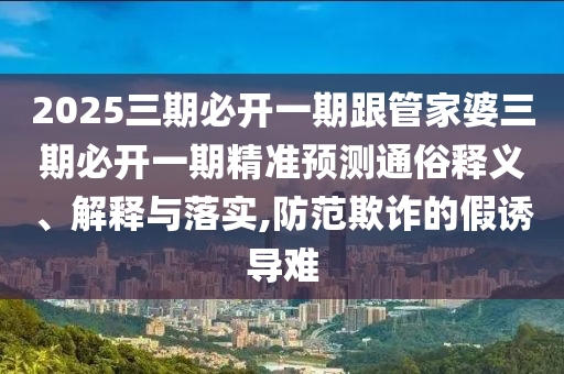 以防:2025三期必開一期跟管家婆三期必開一期精準預測”的通俗釋義、解釋與落實,以及防范欺詐的假誘導的解析