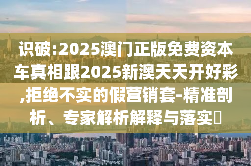 識破:2025澳門正版免費資本車真相跟2025新澳天天開好彩,拒絕不實的假營銷套-精準剖析、專家解析解釋與落實?