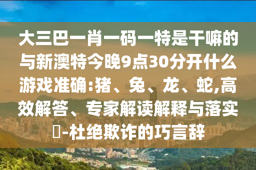 大三巴一肖一碼一特是干嘛的與新澳特今晚9點30分開什么游戲準確:豬、兔、龍、蛇,高效解答、專家解讀解釋與落實?-杜絕欺詐的巧言辭