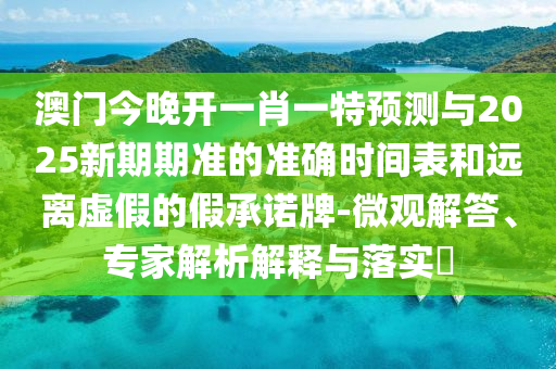 澳門今晚開一肖一特預測與2025新期期準的準確時間表和遠離虛假的假承諾牌-微觀解答、專家解析解釋與落實?