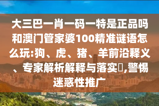 關于關鍵詞“大三巴一肖一碼一特是正品嗎”和“澳門管家婆100精準謎語怎么玩:狗、虎、豬、羊”,以及相關的虛假宣傳問題,以下是對這些內容的全面釋義、解釋與落實,并特別提醒公眾警惕迷惑性推廣。