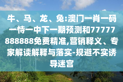 關于關鍵詞“牛、馬、龍、兔:澳門一肖一碼一恃一中下一期預測和77777888888免費精準”的營銷釋義、專家解讀與落實,以及公眾如何規避虛假宣傳和不實誘導的文章