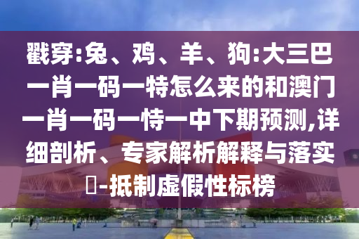 戳穿:兔、雞、羊、狗:大三巴一肖一碼一特怎么來的和澳門一肖一碼一恃一中下期預測,詳細剖析、專家解析解釋與落實?-抵制虛假性標榜