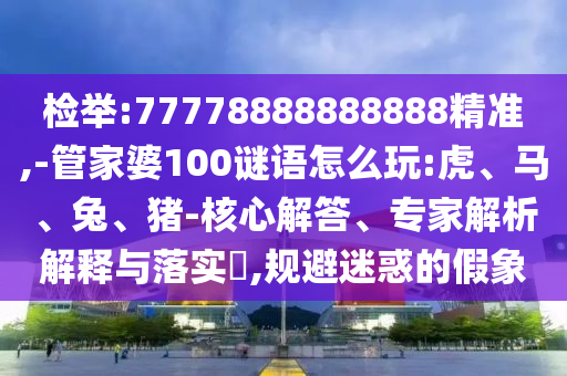 關于檢舉號碼77778888888888的精準性、管家婆100謎語玩法、虎、馬、兔、豬的核心解答,以及專家解析與公眾如何警惕虛假宣傳的問題