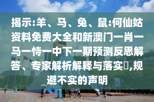 羊、馬、兔、鼠:何仙姑資料免費大全和新澳門一肖一馬一恃一中下一期預測:反思解答、專家解析解釋與落實?